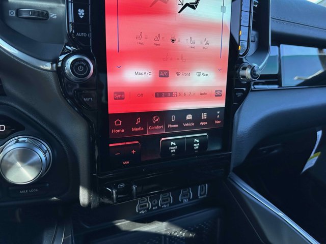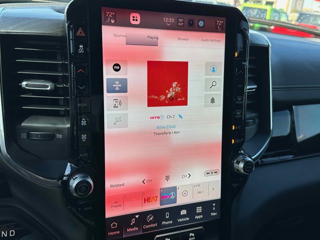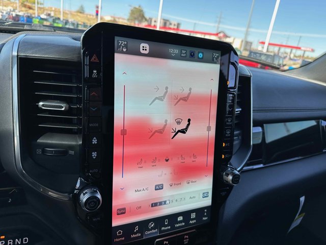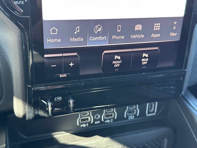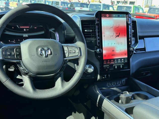 - LARAMIE LEVEL 2 EQUIPMENT GROUP -inc: Rain Sensitive Windshield Wipers Front Passenger Interactive Display Secondary Active Grille Shutters Smartphone As A Key Capable 14.4 Touchscreen Display Dual Wireless Charging Pad Radio: Uconnect 5 Nav w/14.4 Display harman/kardon 19 Speaker Premium Sound Cluster 12 TFT Color Display Power Tailgate